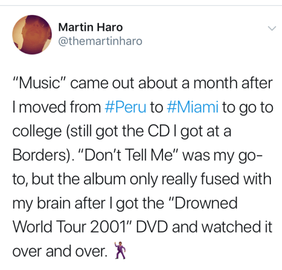 Last week, I answered one of Madonna’s tweets, and her Music has been playing at home ever since. No music, no fun. No fun, no life. Repeat it like a mantra.